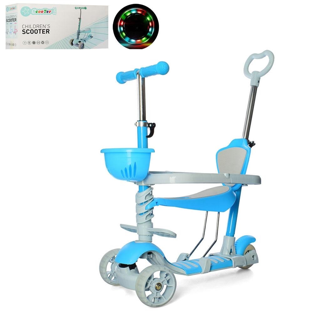 Руль самоката регулируется от 67 до 76 см. На руле расположена корзинка для мелких игрушек.