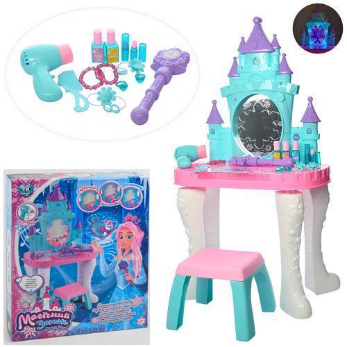 Ігровий набір за мотивами популярного мультфільму Frozen дасть дівчинці зануритися в казковий безтурботний світ і відчути себе принцесою. До набору входять не менш чарівні та реалістичні аксесуари, наприклад фен по-справжньому видушує повітря, а паличка-пульт активує світлові та звукові ефекти на дзеркалі (також ефекти можна ввімкнути натиснувши на кнопку на самому дзеркалі).